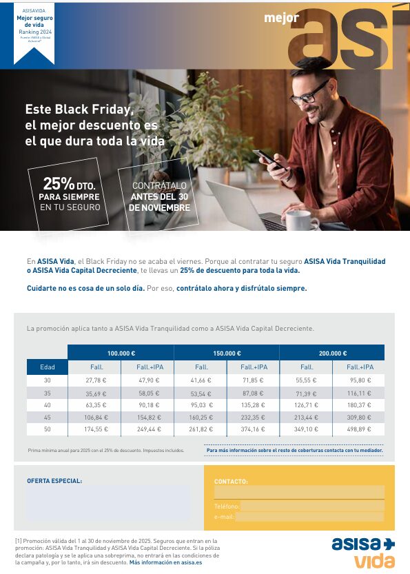 La campaña de Black Friday 2025 de Asisa Vida ofrece una de las oportunidades más destacadas del año para contratar