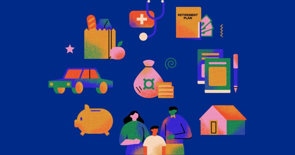 Calcula gastos básicos: vivienda, comida, suministros, transporte, seguros.